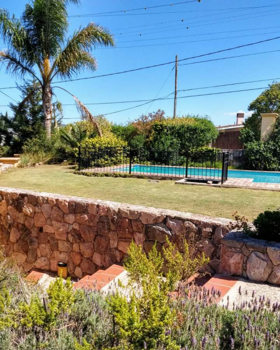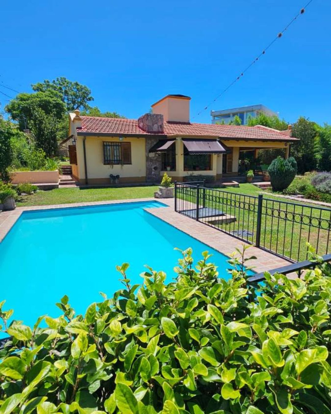 Excelente casa ubicada en Fray Pérez 46 – la casa posee un terreno esquina con ingreso por las dos calles, totalmente parquizado con cerco perimetral de material y rejas. El frente de la casa tiene piscina con una privilegiada vista al lago San Roque.